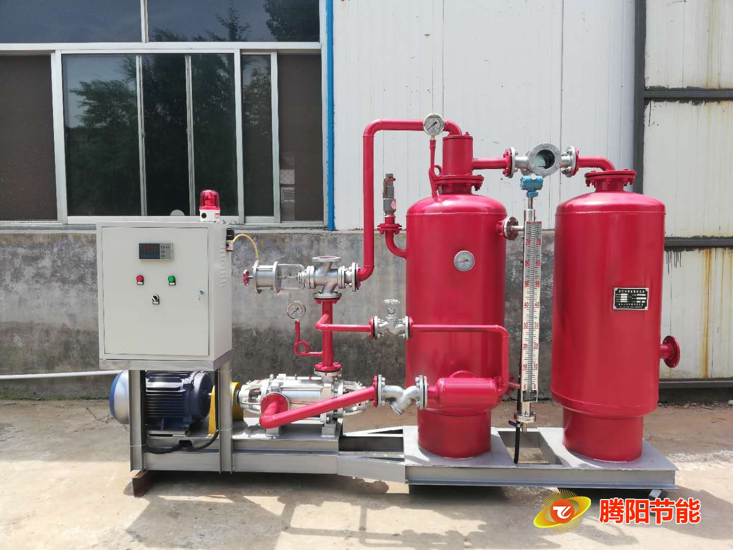 用汽設(shè)備排放的冷凝水及泛汽熱含量約占蒸汽全熱量的百分之二十至三十左右,這些產(chǎn)生的高溫冷凝水,若未能善加利用,會造成大量能源的損失,但是高溫水如果直接用泵抽送,泵前形成的負(fù)壓會使冷凝水汽化,造成嚴(yán)重汽蝕,損壞水泵,傳統(tǒng)的冷凝水回收方法是將其冷確降溫后再用泵抽送。此種方法只能回收部分熱量,約占排放量的30-50%。新型冷凝水回收機通過設(shè)計的調(diào)壓裝置、氣蝕銷除裝置和水泵,解決了氣蝕問題,從而實現(xiàn)了高溫冷凝水和二次汽的閉式回收;通過管路合理設(shè)計,解決了多路壓力不平衡的問題;采用自動控制系統(tǒng)使冷凝水能及時回收,減少浪費,解決腐蝕。